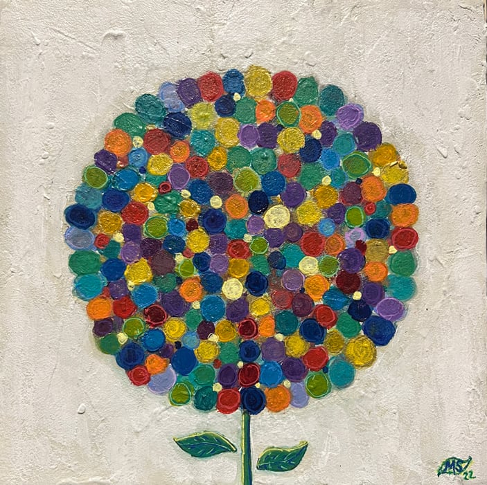 I find inspiration from contemplating nature, from all art forms as well as from works of other artists such as Alphonse Mucha and the Art Nouveau style, as I love the way the lines flow to create organic shapes and movement. Georgia O’Keefe and Susan Seldon Boulet for their use of colours, shapes and textures to express their subjects amongst many others.